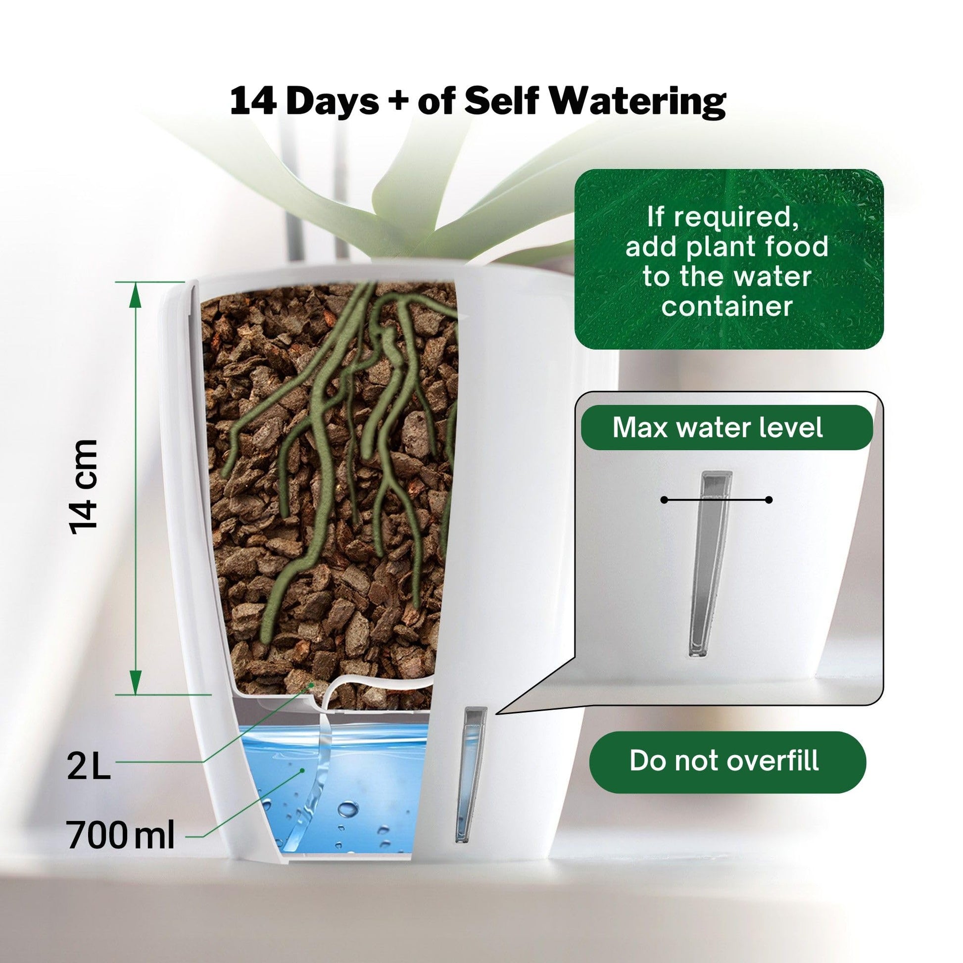 Our self-watering pots take the stress out of plant care, making them ideal for both beginners and experienced plant enthusiasts. Within just a few weeks, you’ll notice faster, healthier growth—whether it’s fresh new leaves, stronger roots, or even flowering spikes. These pots also help rescue struggling plants by providing consistent hydration. Instead of waiting for you to water, your plant can drink whenever it needs to.